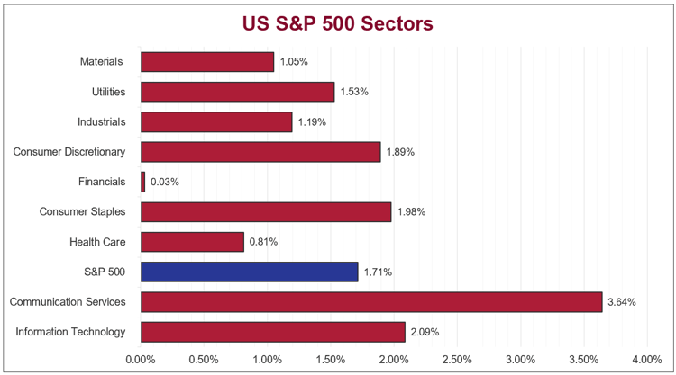 US sharemarkets posted strong gains last week, making up lost ground after last Friday’s sharp sell-off, as easing US-China trade tensions helped restore risk appetite. Optimism was supported by ongoing big-bank earnings and renewed enthusiasm for AI-related stocks. The S&P 500 (+1.7%) and NASDAQ (+2.1%) both advanced, as all of the major industry sectors finished the week in positive territory. As a result, the Information Technology (+2.1%) sector led the gains, while Consumer Staples (+2.0%) and Utilities (+1.5%) also rose. Economic data remained mixed, with signs of resilience in housing and manufacturing, despite the government shutdown. Gold prices rose over the week, supported by a weaker US dollar and softer Treasury yields, as investors sought safety amid lingering geopolitical and policy uncertainty.