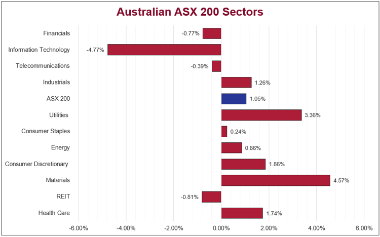 The Australian sharemarket rebounded last week, with the ASX 200 rising 1.1% after snapping a three-week decline. Volatility was driven by ongoing Iran-US tensions, with markets reacting sharply to mixed diplomacy headlines. The Materials sector (4.6%) led gains, supported by a metals rally on ceasefire optimism, while Industrials (1.3%) and Health Care (1.7%) also advanced. The Energy sector (0.9%) showed resilience, buoyed by crude movements and Middle East supply concerns, despite some coal and oil names retreating midweek. Information Technology (-4.8%) lagged to near three-year lows amid persistent AI disruption fears. Bond yields rose, keeping risk appetite cautious.