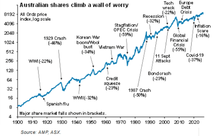 While the risks are real, that doesn’t necessarily mean immediate investment action is required. Markets always have had something to worry about. War, inflation, recessions, elections and policy mistakes are nothing new. Long-term investors have historically been rewarded for staying invested. That does not mean every setback is small. Some are not. But it does mean that selling into fear has usually been a poor strategy. The probability of timing it right is low and if you’re successful it’s likely to be more luck than skill.