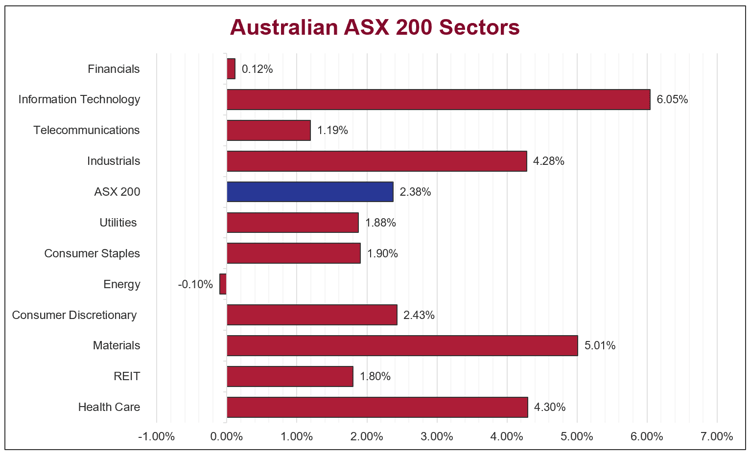 The Australian sharemarket advanced 2.4% last week, which ended a four-week streak of losses. Markets were buoyed by stronger US leads, as dovish Federal Reserve commentary helped lift local equities. Domestically, the latest CPI release showed annual inflation rose to 3.8%, which came in above market expectations of 3.6%. Housing was the biggest driver of consumer inflation, rising 5.9% due to higher electricity, rent and new dwelling costs. Electricity prices jumped 37.1% in October after households exhausted their government bill rebates. The Materials sector (+5.0%) found support from firmer commodity prices, while the Information Technology sector (+6.1%) outperformed.