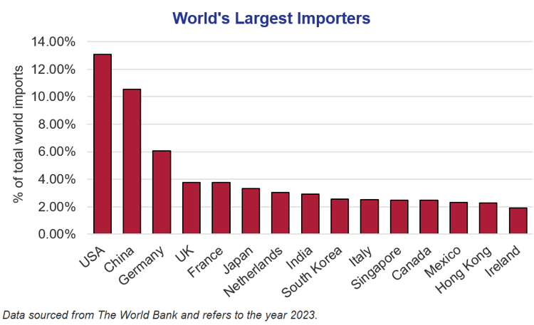 A major theme already coming through this year is one of multi-polarity. The world’s forces continue to attempt to reduce reliance on the US. Whether its ultimately effective given the US’ importance in global trade is up for debate. Let’s not forget the US is the world’s largest importer, representing over 13% of global imports, approaching US$4 trillion in recent years.