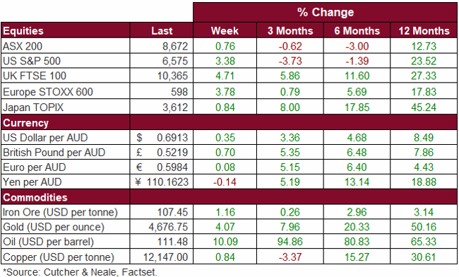 US sharemarkets rebounded last week, snapping a five week losing streak, with the S&P 500 advancing 3.4%. Investor sentiment improved early in the week on hopes the Iran conflict could be resolved sooner than feared, easing concerns around a prolonged energy shock. The price of oil continued to rise, surging a further 10.1%, while gold also rallied, up 4.1%. All eleven industry sectors rose last week, as technology and momentum stocks led the gains, with Alphabet (7.6%) and Meta (7.1%) among the standout performers. In company news, Eli Lily advanced 6.5%, after the FDA approved its oral weight loss pill Foundayo.