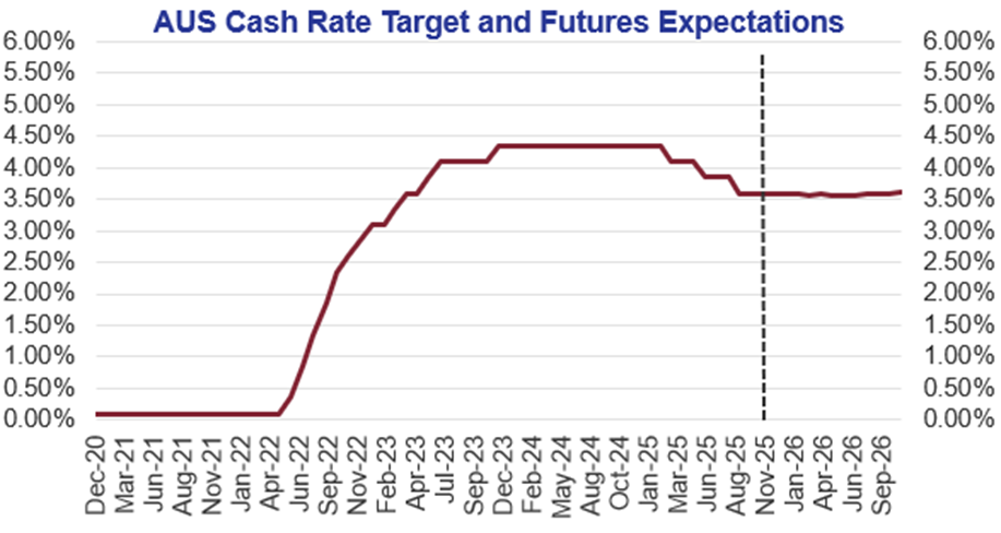 In Australia, the ASX 200 declined 2.66% in November, marking its weakest monthly performance since March. Market sentiment was weighed down by cautious earnings updates, unfavourable offshore leads, and renewed concerns around the domestic inflation outlook. The Reserve Bank left the cash rate unchanged at 3.60% but noted signs that inflationary pressures may persist for longer than expected. Stronger-than-anticipated employment data and a hotter monthly CPI reading reinforced expectations that the RBA may stay on hold for an extended period. Bond yields moved higher across the curve, while the Australian dollar was little changed, rising 0.18% to US$0.6558.